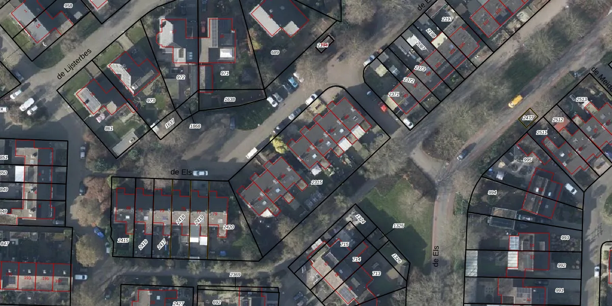 Het perceel waarop de Els 87 staat heeft een oppervlakte van 1363 m². Dit is een zeer groot perceel. De perceeloppervlakte wordt geregistreerd door het Kadaster. Gedetailleerde informatie over de maten van dit perceel kunt u vinden in het rapport Kadastrale kaart met maatvoering van de Els 87.