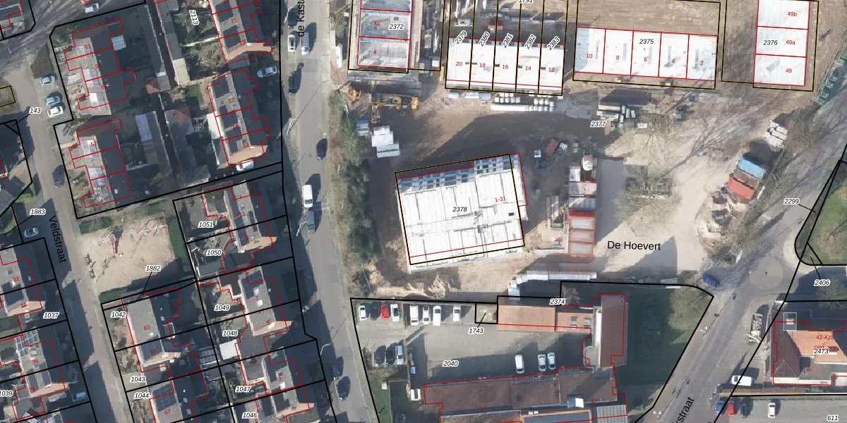 Het perceel waarop De Hoevert 25 staat heeft een oppervlakte van 596 m². Dit is een groot perceel. De perceeloppervlakte wordt geregistreerd door het Kadaster. Gedetailleerde informatie over de maten van dit perceel kunt u vinden in het rapport Kadastrale kaart met maatvoering van De Hoevert 25.