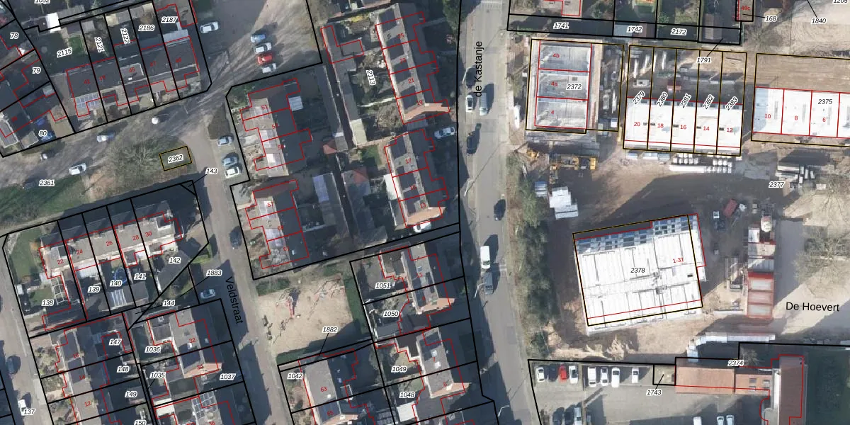 de Kastanje 13 is gelegen op kadastraal perceel DDM00M2113. Deze kadastrale aanduiding is uniek en wordt gebruikt door het Kadaster om eigendomsrechten en andere zakelijke rechten vast te leggen. Het perceel maakt onderdeel uit van de kadastrale gemeente Didam.
