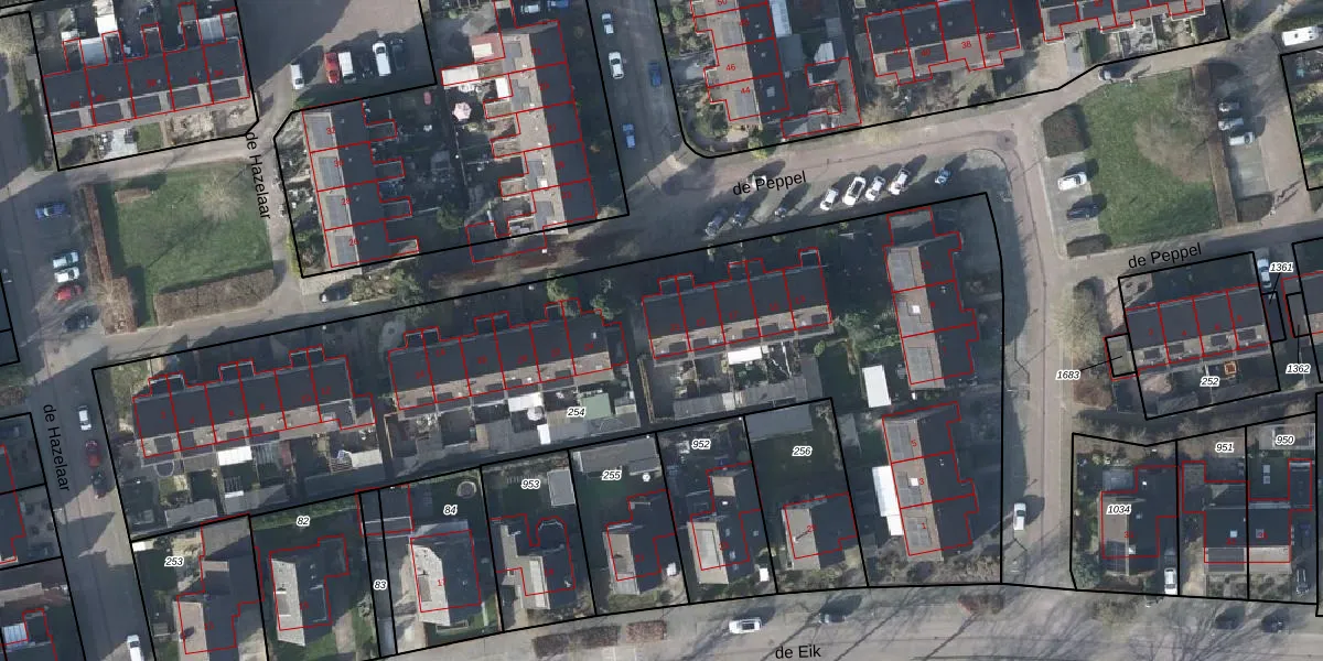 Het perceel waarop de Peppel 21 staat heeft een oppervlakte van 4280 m². Dit is een zeer groot perceel. De perceeloppervlakte wordt geregistreerd door het Kadaster. Gedetailleerde informatie over de maten van dit perceel kunt u vinden in het rapport Kadastrale kaart met maatvoering van de Peppel 21.