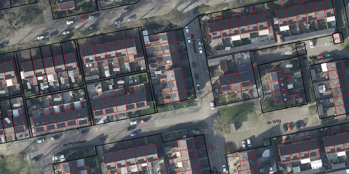 Het perceel waarop de Peppel 45 staat heeft een oppervlakte van 950 m². Dit is een groot perceel. De perceeloppervlakte wordt geregistreerd door het Kadaster. Gedetailleerde informatie over de maten van dit perceel kunt u vinden in het rapport Kadastrale kaart met maatvoering van de Peppel 45.