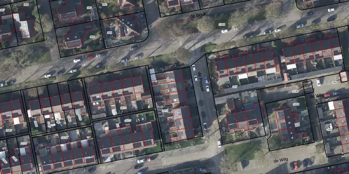 Het perceel waarop de Peppel 51 staat heeft een oppervlakte van 950 m². Dit is een groot perceel. De perceeloppervlakte wordt geregistreerd door het Kadaster. Gedetailleerde informatie over de maten van dit perceel kunt u vinden in het rapport Kadastrale kaart met maatvoering van de Peppel 51.