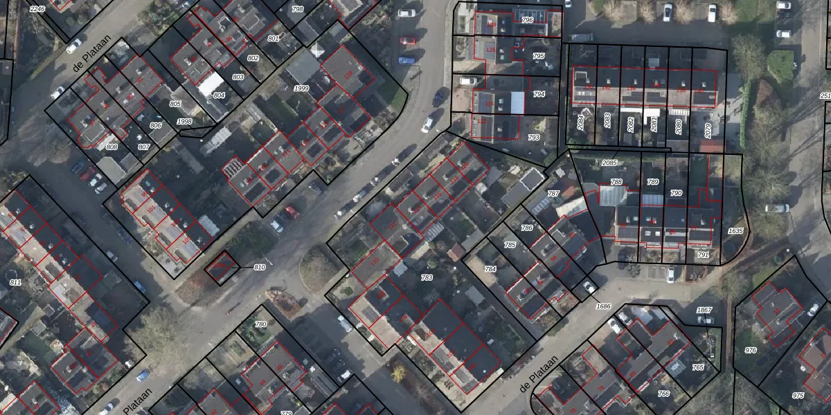 Het perceel waarop de Plataan 114 staat heeft een oppervlakte van 1984 m². Dit is een zeer groot perceel. De perceeloppervlakte wordt geregistreerd door het Kadaster. Gedetailleerde informatie over de maten van dit perceel kunt u vinden in het rapport Kadastrale kaart met maatvoering van de Plataan 114.