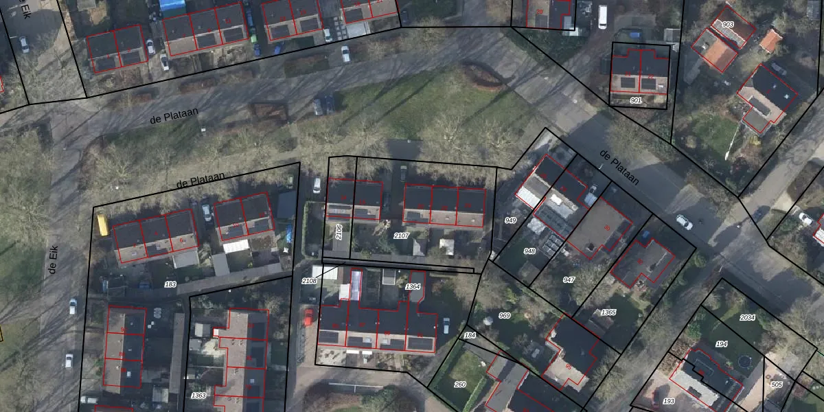 Het perceel waarop de Plataan 20 staat heeft een oppervlakte van 840 m². Dit is een groot perceel. De perceeloppervlakte wordt geregistreerd door het Kadaster. Gedetailleerde informatie over de maten van dit perceel kunt u vinden in het rapport Kadastrale kaart met maatvoering van de Plataan 20.