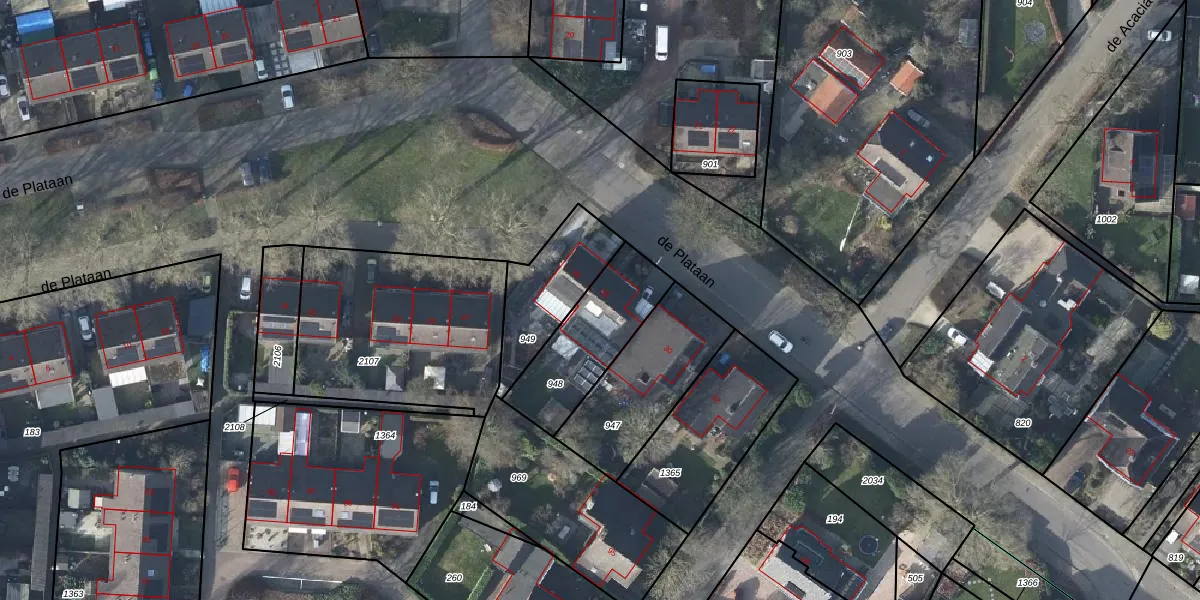 Gebruik de zoekbalk of klik op een perceel voor informatie over de adressen binnen dit perceel.