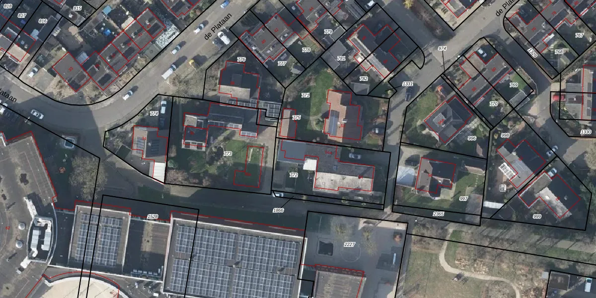 Het perceel waarop de Plataan 54-a staat heeft een oppervlakte van 693 m². Dit is een groot perceel. De perceeloppervlakte wordt geregistreerd door het Kadaster. Gedetailleerde informatie over de maten van dit perceel kunt u vinden in het rapport Kadastrale kaart met maatvoering van de Plataan 54-a.