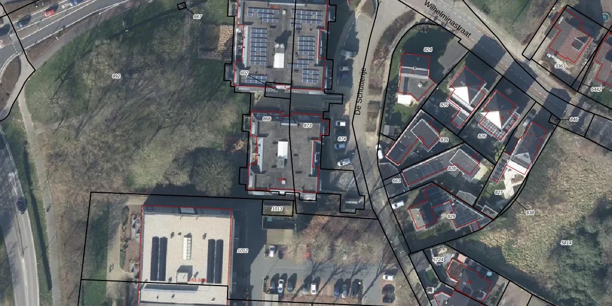 Het perceel waarop De Schutterije 14 staat heeft een oppervlakte van 878 m². Dit is een groot perceel. De perceeloppervlakte wordt geregistreerd door het Kadaster. Gedetailleerde informatie over de maten van dit perceel kunt u vinden in het rapport Kadastrale kaart met maatvoering van De Schutterije 14.