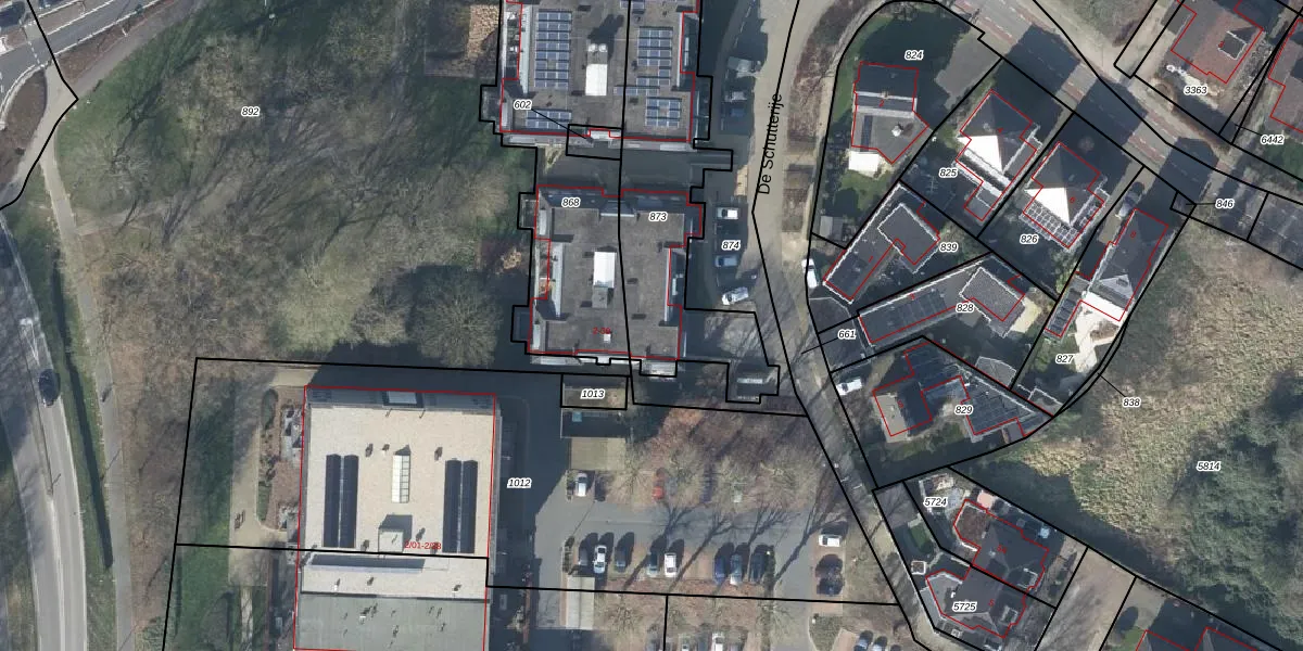 Het perceel waarop De Schutterije 16 staat heeft een oppervlakte van 878 m². Dit is een groot perceel. De perceeloppervlakte wordt geregistreerd door het Kadaster. Gedetailleerde informatie over de maten van dit perceel kunt u vinden in het rapport Kadastrale kaart met maatvoering van De Schutterije 16.