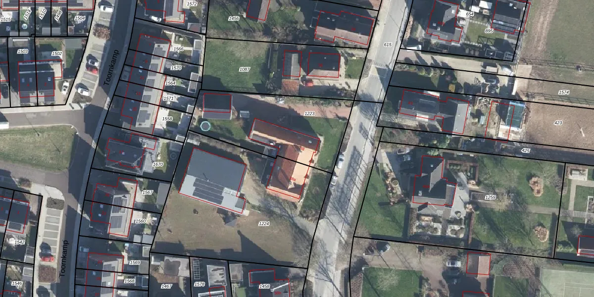 Het adres is gelegen op perceel 1223 in de sectie N en de kadastrale gemeente Didam. De kadastrale aanduiding is aldus DDM00-N-1223. Het perceel is 1025 m² groot. Dat is kleiner dan de gemiddelde perceeloppervlakte in Didam, dat op 3189,85 m² ligt. De grootste perceeloppervlakte in de kadastrale gemeente is 42,6 ha. De kleinste oppervlakte bedraagt 0 m². Er zijn geen andere adressen aanwezig op het perceel. In de Basisregistratie Kadaster (BRK) werden de grenzen van het perceel geregistreerd op 17-02-2026.