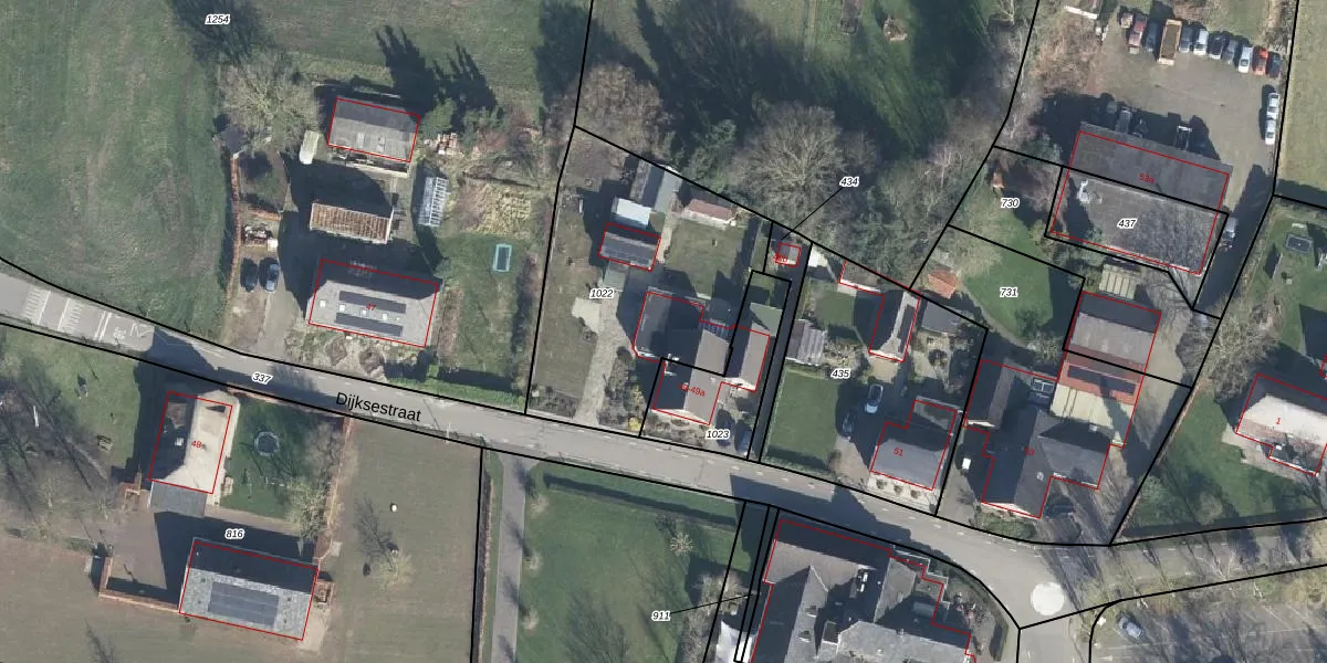 Het perceel waarop Dijksestraat 49-a staat heeft een oppervlakte van 1080 m². Dit is een zeer groot perceel. De perceeloppervlakte wordt geregistreerd door het Kadaster. Gedetailleerde informatie over de maten van dit perceel kunt u vinden in het rapport Kadastrale kaart met maatvoering van Dijksestraat 49-a.