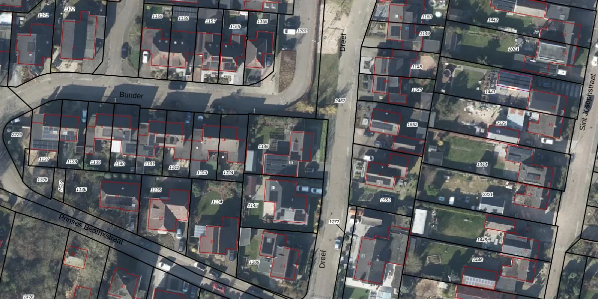 Het perceel waarop Dreef 5 staat heeft een oppervlakte van 535 m². Dit is een groot perceel. De perceeloppervlakte wordt geregistreerd door het Kadaster. Gedetailleerde informatie over de maten van dit perceel kunt u vinden in het rapport Kadastrale kaart met maatvoering van Dreef 5.