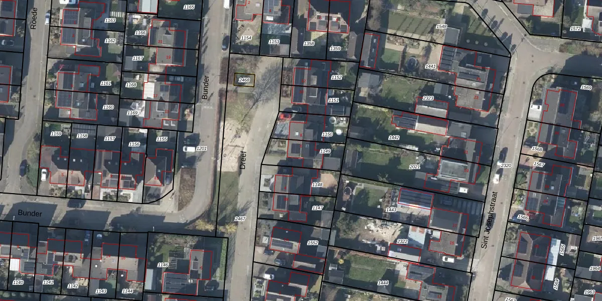 Gebruik de zoekbalk of klik op een perceel voor informatie over de adressen binnen dit perceel.