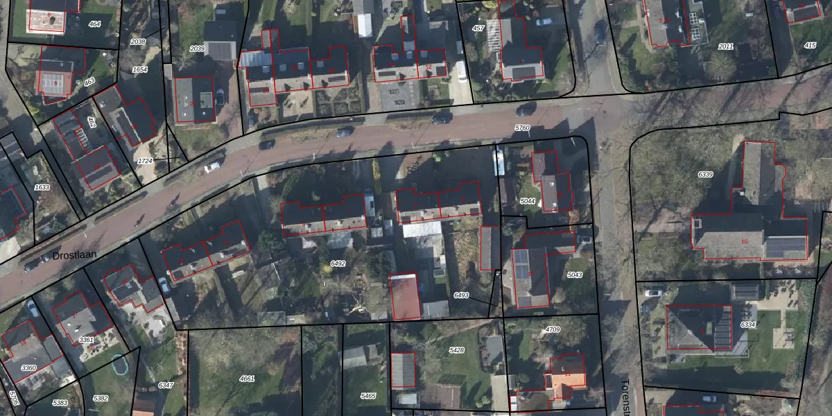 Drostlaan 5 is gelegen op kadastraal perceel DDM00K6492. Deze kadastrale aanduiding is uniek en wordt gebruikt door het Kadaster om eigendomsrechten en andere zakelijke rechten vast te leggen. Het perceel maakt onderdeel uit van de kadastrale gemeente Didam.