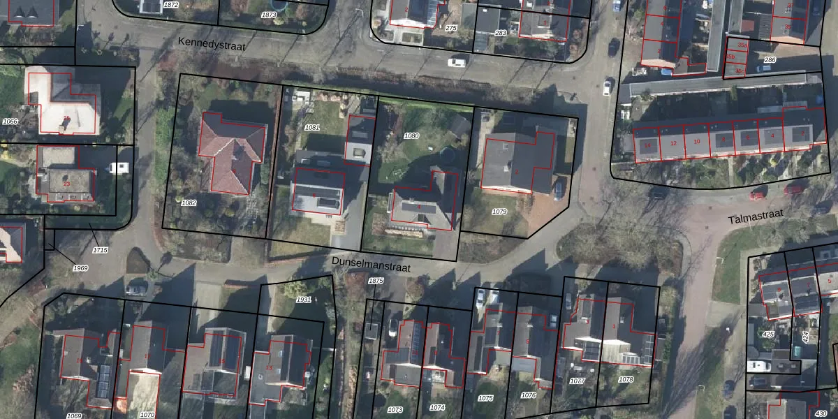 Gebruik de zoekbalk of klik op een perceel voor informatie over de adressen binnen dit perceel.