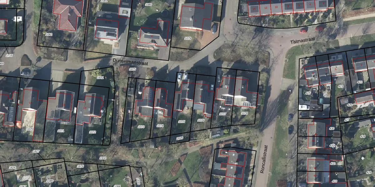 Het perceel waarop Dunselmanstraat 7 staat heeft een oppervlakte van 341 m². Dit is een groot perceel. De perceeloppervlakte wordt geregistreerd door het Kadaster. Gedetailleerde informatie over de maten van dit perceel kunt u vinden in het rapport Kadastrale kaart met maatvoering van Dunselmanstraat 7.