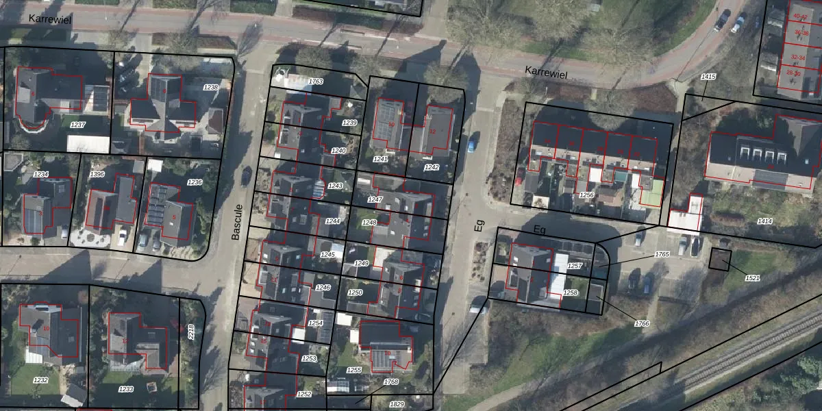 Gebruik de zoekbalk of klik op een perceel voor informatie over de adressen binnen dit perceel.