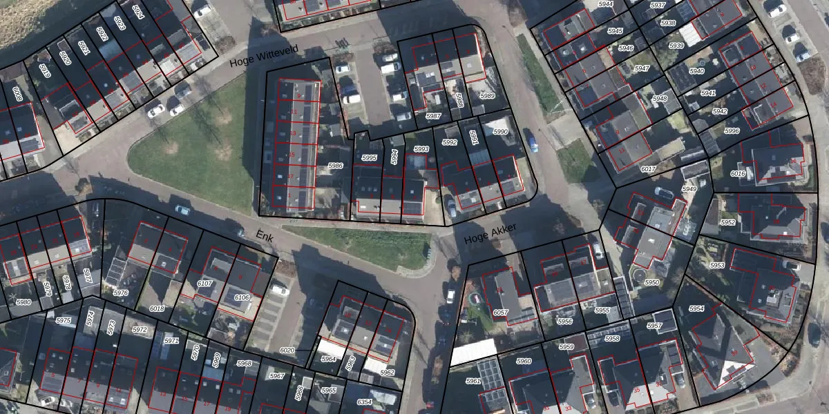Het perceel waarop Enk 7 staat heeft een oppervlakte van 199 m². Dit is een middelgroot perceel. De perceeloppervlakte wordt geregistreerd door het Kadaster. Gedetailleerde informatie over de maten van dit perceel kunt u vinden in het rapport Kadastrale kaart met maatvoering van Enk 7.