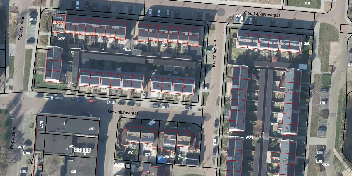 Geraniumstraat 33 is gelegen op kadastraal perceel DDM00L2382. Deze kadastrale aanduiding is uniek en wordt gebruikt door het Kadaster om eigendomsrechten en andere zakelijke rechten vast te leggen. Het perceel maakt onderdeel uit van de kadastrale gemeente Didam.