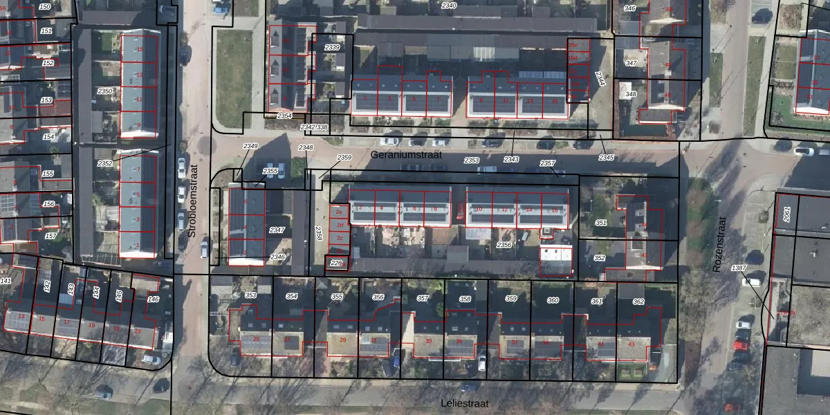 Geraniumstraat 6 is gelegen op kadastraal perceel DDM00L2356. Deze kadastrale aanduiding is uniek en wordt gebruikt door het Kadaster om eigendomsrechten en andere zakelijke rechten vast te leggen. Het perceel maakt onderdeel uit van de kadastrale gemeente Didam.