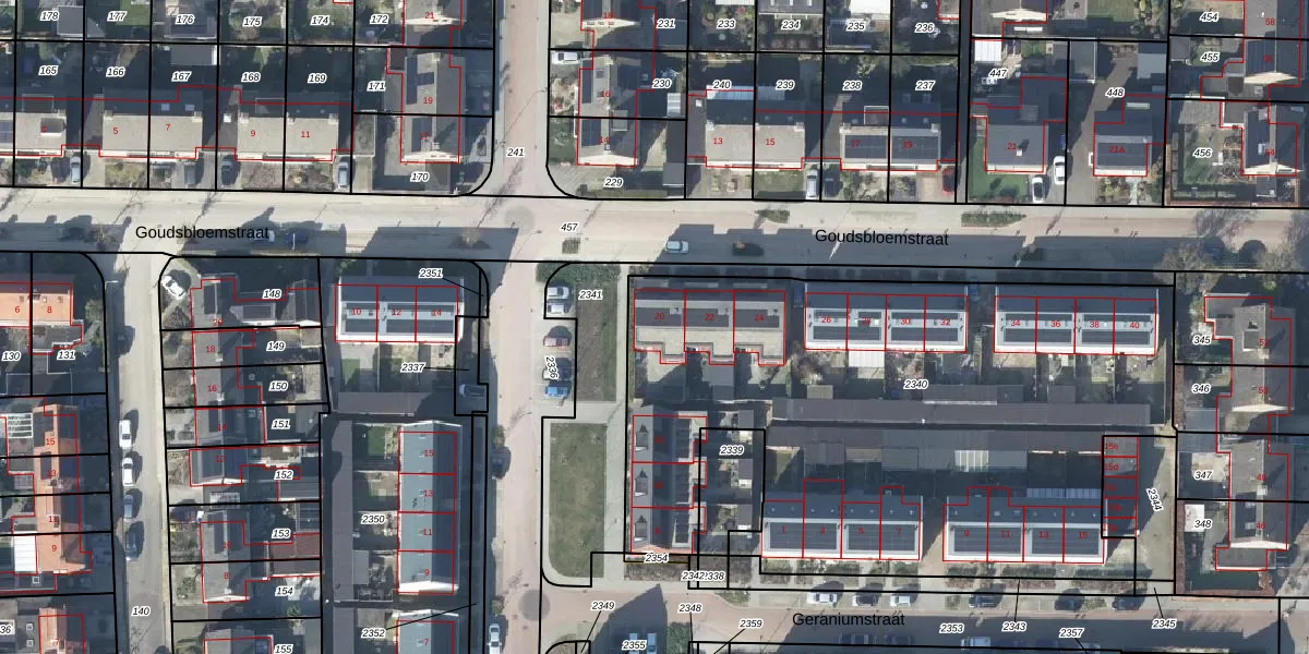 Het perceel waarop Goudsbloemstraat 20 staat heeft een oppervlakte van 3352 m². Dit is een zeer groot perceel. De perceeloppervlakte wordt geregistreerd door het Kadaster. Gedetailleerde informatie over de maten van dit perceel kunt u vinden in het rapport Kadastrale kaart met maatvoering van Goudsbloemstraat 20.