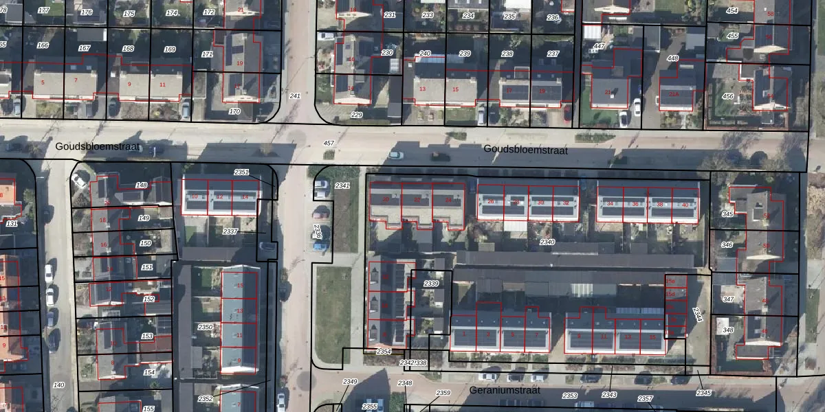 Het perceel waarop Goudsbloemstraat 22 staat heeft een oppervlakte van 3352 m². Dit is een zeer groot perceel. De perceeloppervlakte wordt geregistreerd door het Kadaster. Gedetailleerde informatie over de maten van dit perceel kunt u vinden in het rapport Kadastrale kaart met maatvoering van Goudsbloemstraat 22.