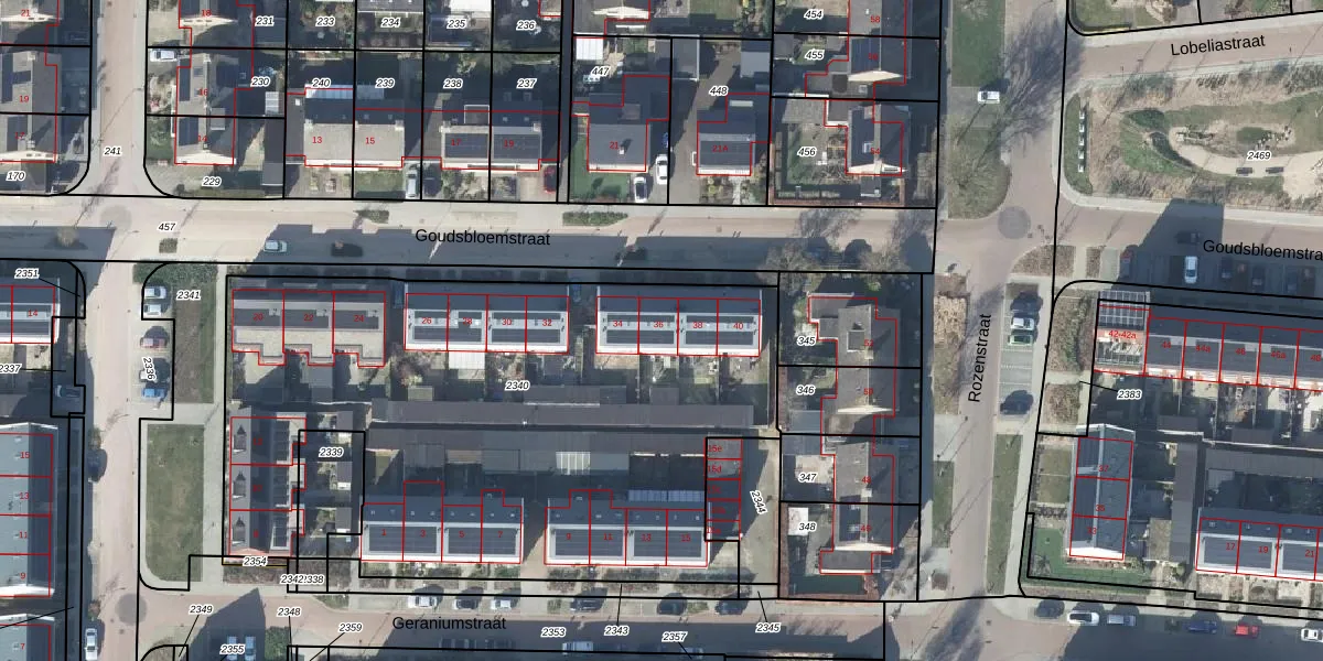 Het perceel waarop Goudsbloemstraat 36 staat heeft een oppervlakte van 3352 m². Dit is een zeer groot perceel. De perceeloppervlakte wordt geregistreerd door het Kadaster. Gedetailleerde informatie over de maten van dit perceel kunt u vinden in het rapport Kadastrale kaart met maatvoering van Goudsbloemstraat 36.