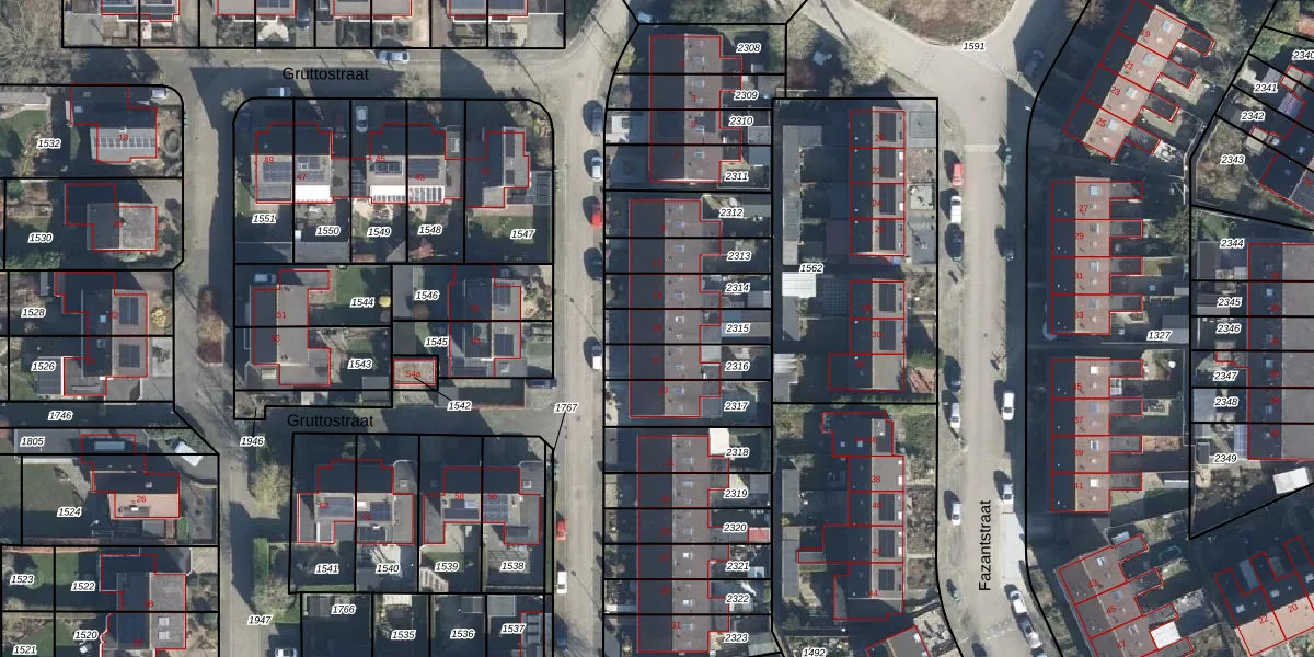 Gruttostraat 15 is gelegen op kadastraal perceel DDM00M2315. Deze kadastrale aanduiding is uniek en wordt gebruikt door het Kadaster om eigendomsrechten en andere zakelijke rechten vast te leggen. Het perceel maakt onderdeel uit van de kadastrale gemeente Didam.