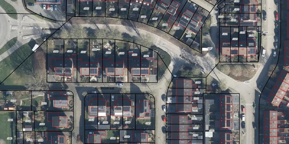 Gruttostraat 2 is gelegen op kadastraal perceel DDM00M1552. Deze kadastrale aanduiding is uniek en wordt gebruikt door het Kadaster om eigendomsrechten en andere zakelijke rechten vast te leggen. Het perceel maakt onderdeel uit van de kadastrale gemeente Didam.