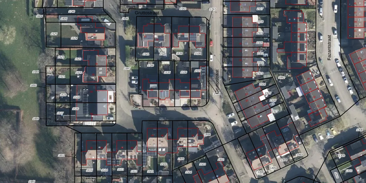 Het perceel waarop Gruttostraat 59 staat heeft een oppervlakte van 216 m². Dit is een middelgroot perceel. De perceeloppervlakte wordt geregistreerd door het Kadaster. Gedetailleerde informatie over de maten van dit perceel kunt u vinden in het rapport Kadastrale kaart met maatvoering van Gruttostraat 59.