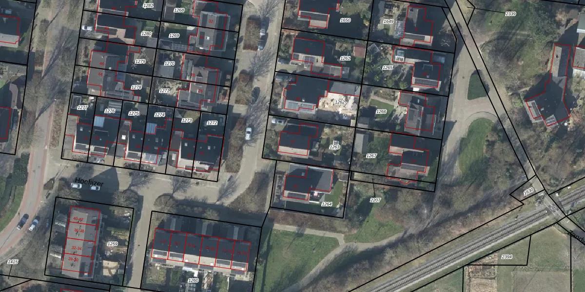 Het perceel waarop Hoefijzer 27 staat heeft een oppervlakte van 450 m². Dit is een groot perceel. De perceeloppervlakte wordt geregistreerd door het Kadaster. Gedetailleerde informatie over de maten van dit perceel kunt u vinden in het rapport Kadastrale kaart met maatvoering van Hoefijzer 27.