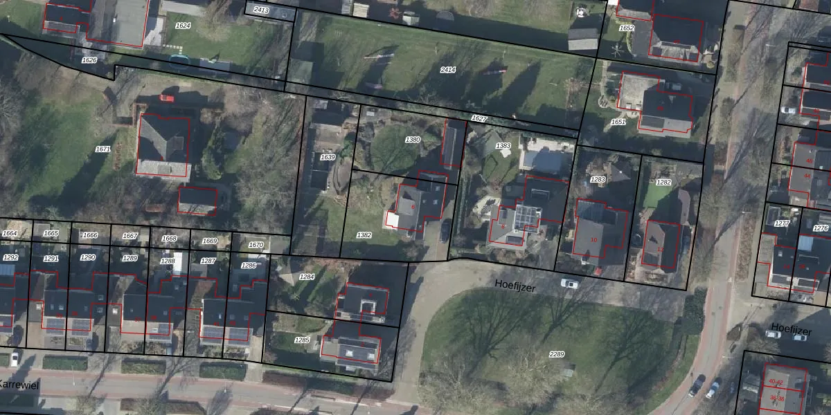 Het perceel waarop Hoefijzer 6 staat heeft een oppervlakte van 530 m². Dit is een groot perceel. De perceeloppervlakte wordt geregistreerd door het Kadaster. Gedetailleerde informatie over de maten van dit perceel kunt u vinden in het rapport Kadastrale kaart met maatvoering van Hoefijzer 6.