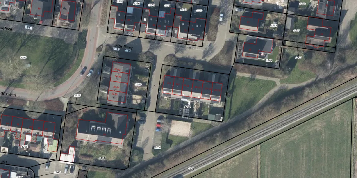 Het perceel waarop Hoefijzer 7 staat heeft een oppervlakte van 1022 m². Dit is een zeer groot perceel. De perceeloppervlakte wordt geregistreerd door het Kadaster. Gedetailleerde informatie over de maten van dit perceel kunt u vinden in het rapport Kadastrale kaart met maatvoering van Hoefijzer 7.