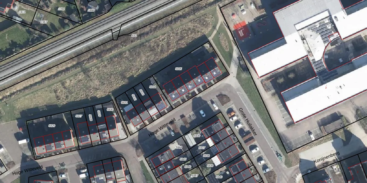 Het perceel waarop Hoge Witteveld 12 staat heeft een oppervlakte van 778 m². Dit is een groot perceel. De perceeloppervlakte wordt geregistreerd door het Kadaster. Gedetailleerde informatie over de maten van dit perceel kunt u vinden in het rapport Kadastrale kaart met maatvoering van Hoge Witteveld 12.