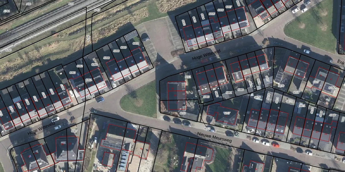 Het perceel waarop Hoge Witteveld 33 staat heeft een oppervlakte van 321 m². Dit is een groot perceel. De perceeloppervlakte wordt geregistreerd door het Kadaster. Gedetailleerde informatie over de maten van dit perceel kunt u vinden in het rapport Kadastrale kaart met maatvoering van Hoge Witteveld 33.