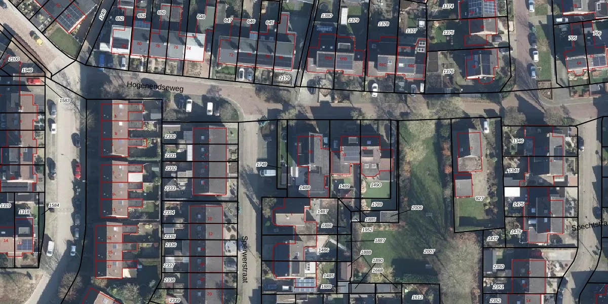Hogenendseweg 33 is gelegen op kadastraal perceel DDM00M1488. Deze kadastrale aanduiding is uniek en wordt gebruikt door het Kadaster om eigendomsrechten en andere zakelijke rechten vast te leggen. Het perceel maakt onderdeel uit van de kadastrale gemeente Didam.