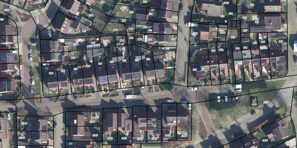 Gebruik de zoekbalk of klik op een perceel voor informatie over de adressen binnen dit perceel.