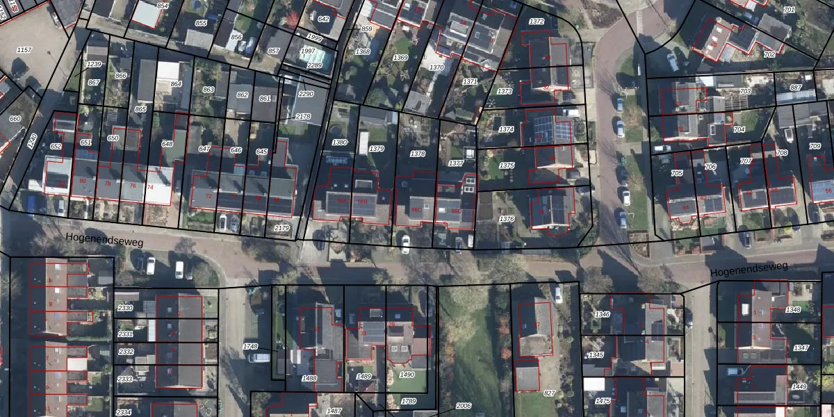 Gebruik de zoekbalk of klik op een perceel voor informatie over de adressen binnen dit perceel.