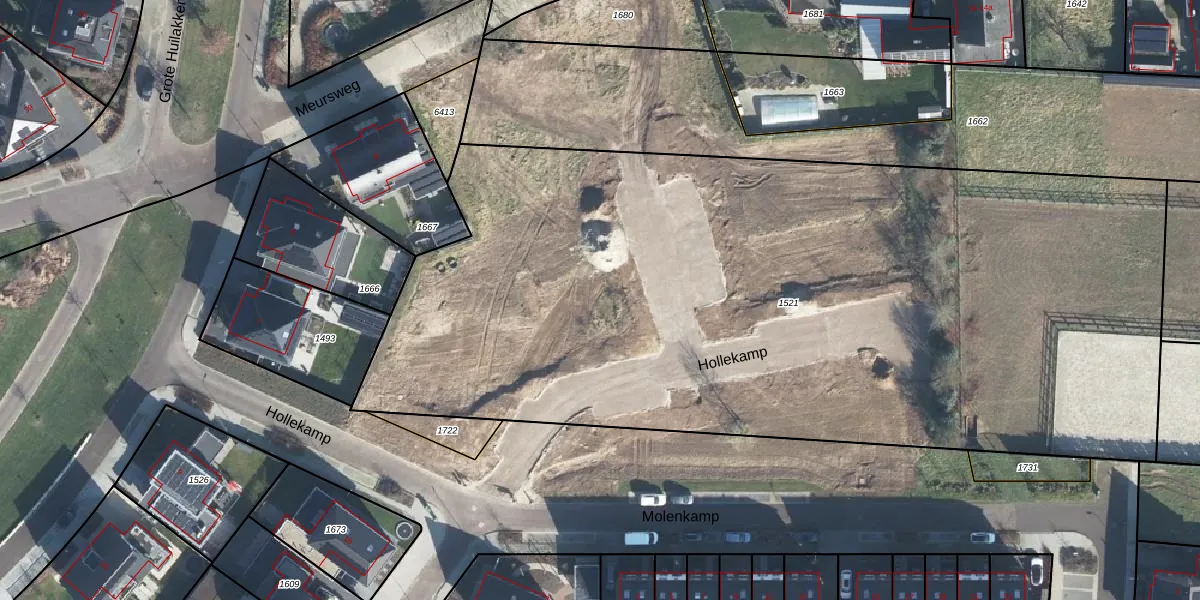 Het perceel waarop Hollekamp 7 staat heeft een oppervlakte van 5808 m². Dit is een zeer groot perceel. De perceeloppervlakte wordt geregistreerd door het Kadaster. Gedetailleerde informatie over de maten van dit perceel kunt u vinden in het rapport Kadastrale kaart met maatvoering van Hollekamp 7.