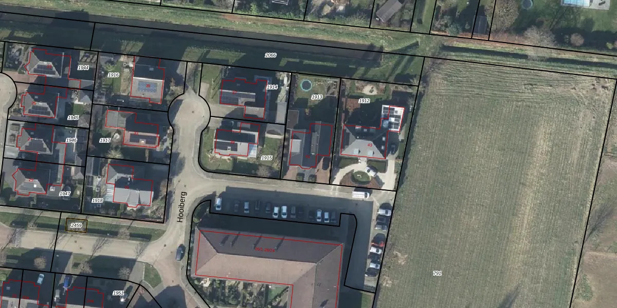 Hooiberg 41 is gelegen op kadastraal perceel DDM00L1913. Deze kadastrale aanduiding is uniek en wordt gebruikt door het Kadaster om eigendomsrechten en andere zakelijke rechten vast te leggen. Het perceel maakt onderdeel uit van de kadastrale gemeente Didam.