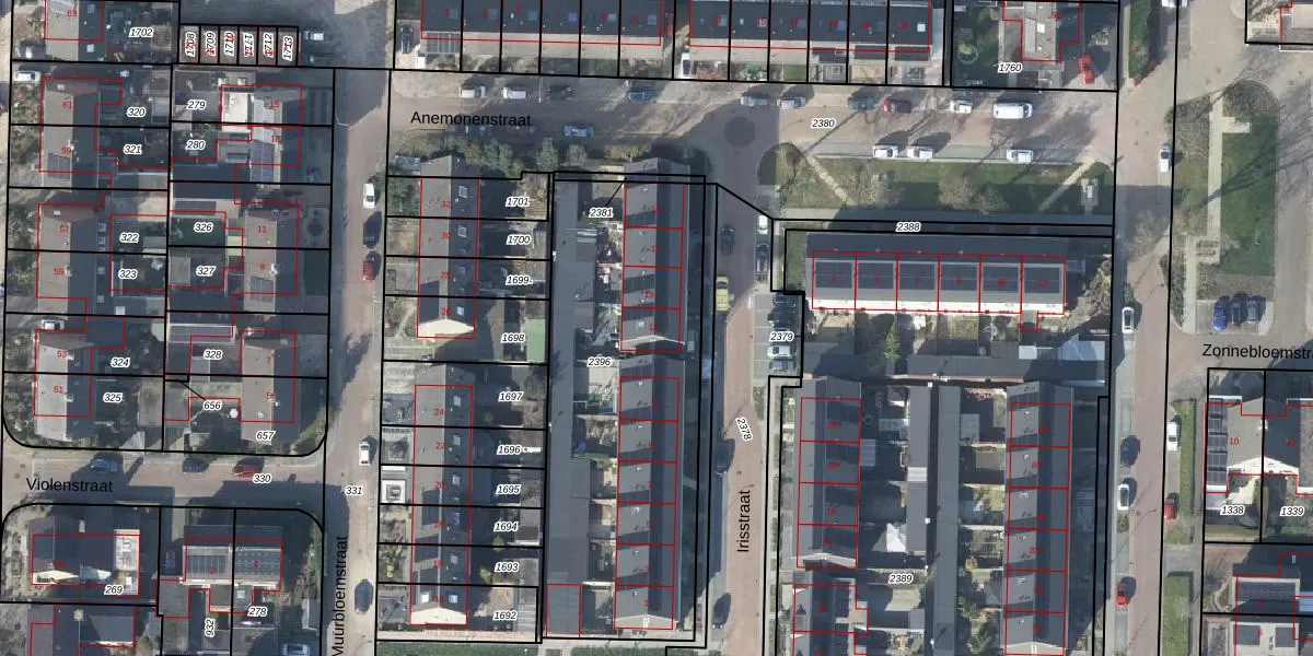 Het perceel waarop Irisstraat 13 staat heeft een oppervlakte van 1623 m². Dit is een zeer groot perceel. De perceeloppervlakte wordt geregistreerd door het Kadaster. Gedetailleerde informatie over de maten van dit perceel kunt u vinden in het rapport Kadastrale kaart met maatvoering van Irisstraat 13.