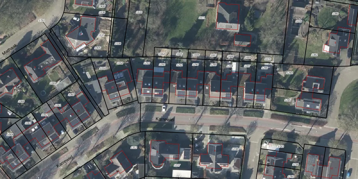 Het perceel waarop Karrewiel 33 staat heeft een oppervlakte van 245 m². Dit is een middelgroot perceel. De perceeloppervlakte wordt geregistreerd door het Kadaster. Gedetailleerde informatie over de maten van dit perceel kunt u vinden in het rapport Kadastrale kaart met maatvoering van Karrewiel 33.