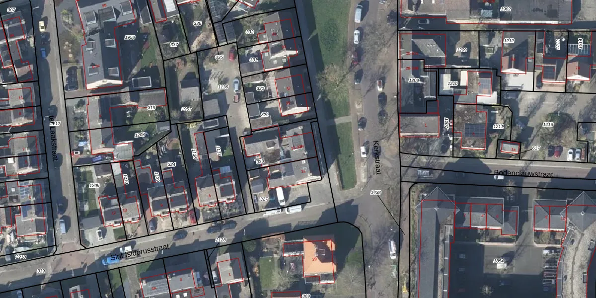 Het perceel waarop Kerkstraat 33 staat heeft een oppervlakte van 313 m². Dit is een groot perceel. De perceeloppervlakte wordt geregistreerd door het Kadaster. Gedetailleerde informatie over de maten van dit perceel kunt u vinden in het rapport Kadastrale kaart met maatvoering van Kerkstraat 33.