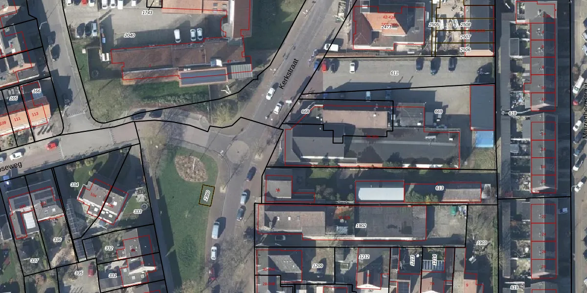 Het perceel waarop Kerkstraat 36 staat heeft een oppervlakte van 1580 m². Dit is een zeer groot perceel. De perceeloppervlakte wordt geregistreerd door het Kadaster. Gedetailleerde informatie over de maten van dit perceel kunt u vinden in het rapport Kadastrale kaart met maatvoering van Kerkstraat 36.