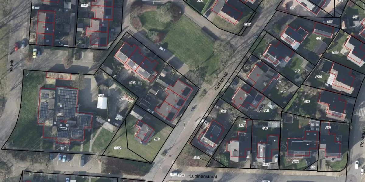 Het perceel waarop Kerkstraat 65 staat heeft een oppervlakte van 1310 m². Dit is een zeer groot perceel. De perceeloppervlakte wordt geregistreerd door het Kadaster. Gedetailleerde informatie over de maten van dit perceel kunt u vinden in het rapport Kadastrale kaart met maatvoering van Kerkstraat 65.