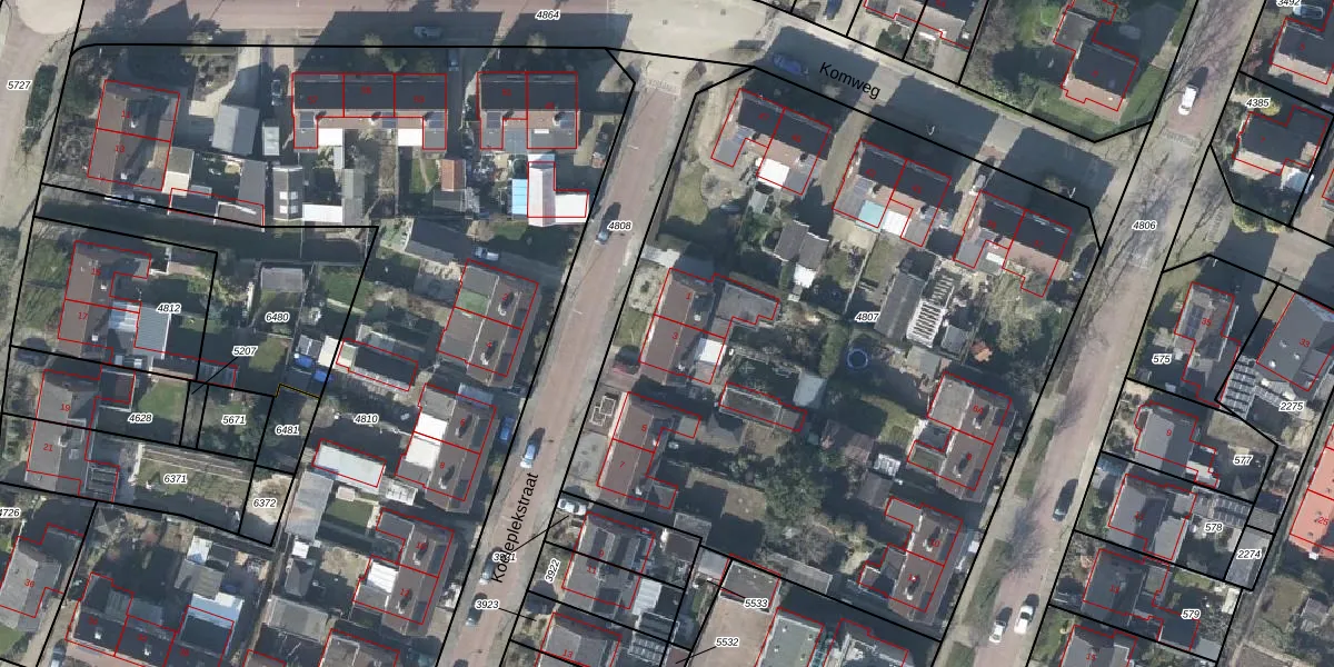 Het perceel waarop Koeleplekstraat 3 staat heeft een oppervlakte van 4340 m². Dit is een zeer groot perceel. De perceeloppervlakte wordt geregistreerd door het Kadaster. Gedetailleerde informatie over de maten van dit perceel kunt u vinden in het rapport Kadastrale kaart met maatvoering van Koeleplekstraat 3.