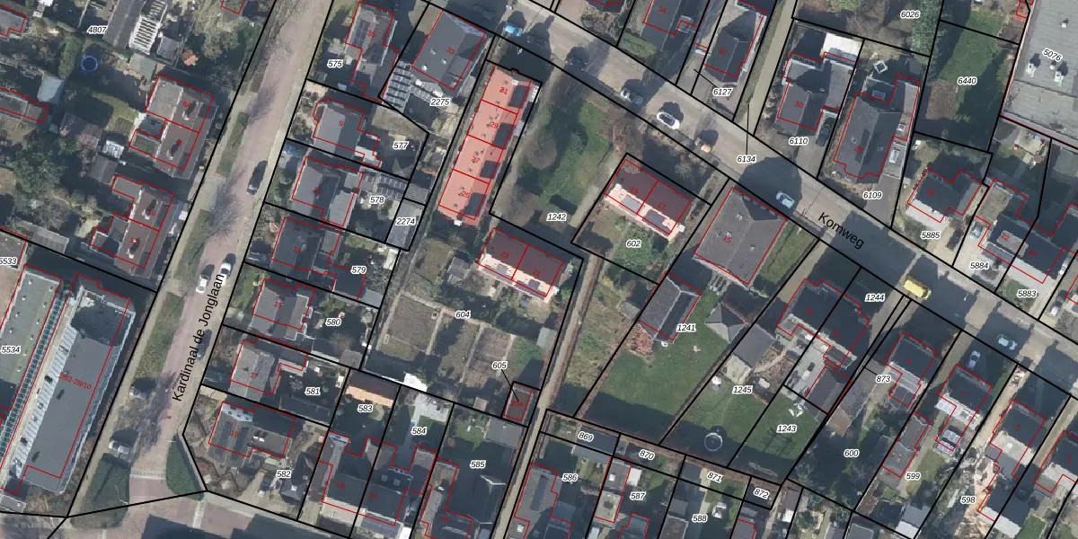 Komweg 21 is gelegen op kadastraal perceel DDM00M604. Deze kadastrale aanduiding is uniek en wordt gebruikt door het Kadaster om eigendomsrechten en andere zakelijke rechten vast te leggen. Het perceel maakt onderdeel uit van de kadastrale gemeente Didam.