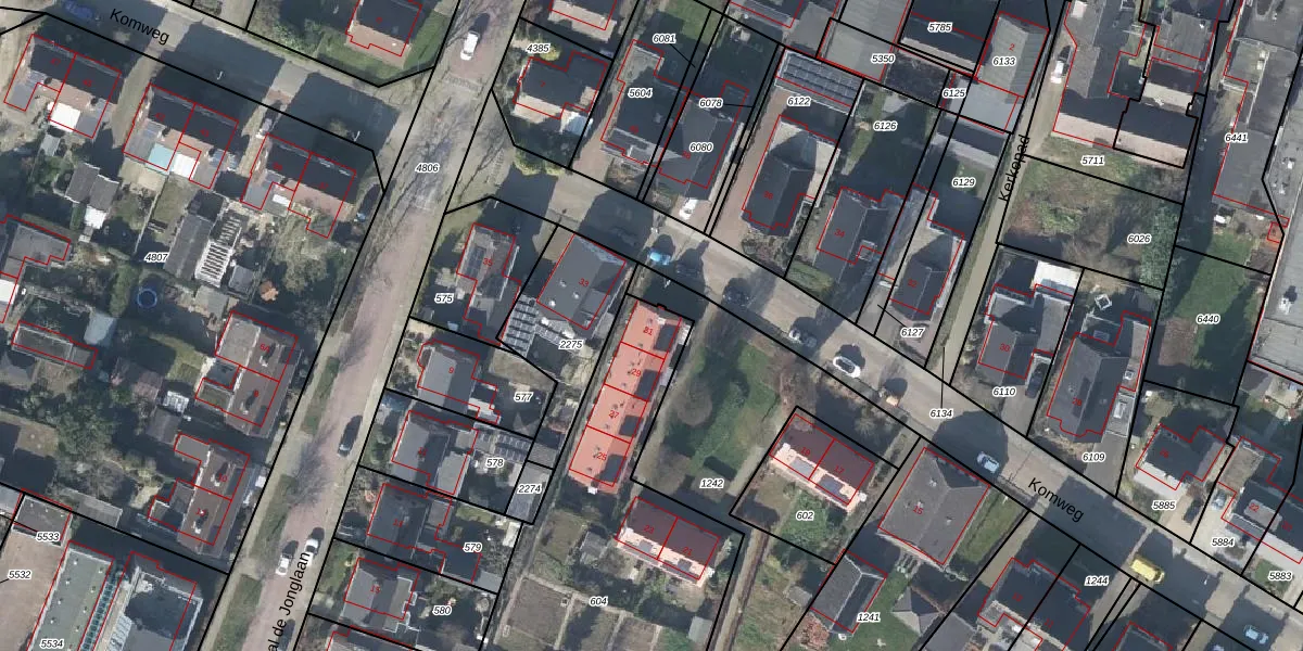 Komweg 31 is gelegen op kadastraal perceel DDM00M604. Deze kadastrale aanduiding is uniek en wordt gebruikt door het Kadaster om eigendomsrechten en andere zakelijke rechten vast te leggen. Het perceel maakt onderdeel uit van de kadastrale gemeente Didam.