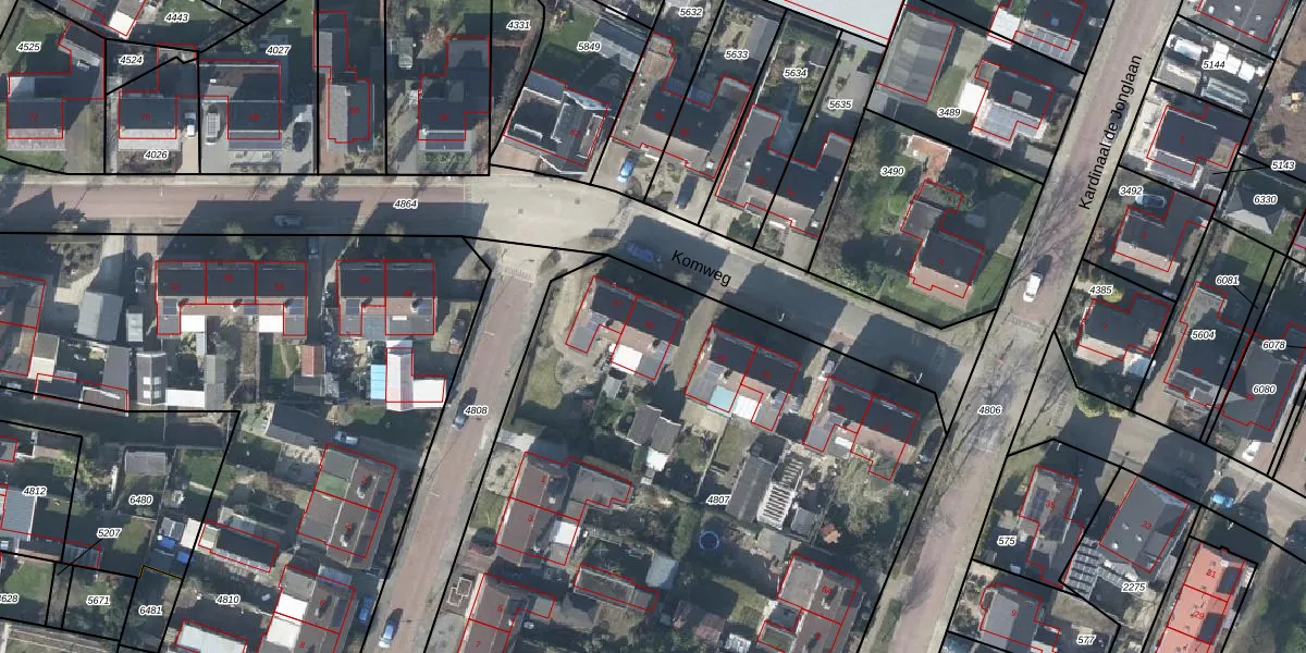 Komweg 45 is gelegen op kadastraal perceel DDM00K4807. Deze kadastrale aanduiding is uniek en wordt gebruikt door het Kadaster om eigendomsrechten en andere zakelijke rechten vast te leggen. Het perceel maakt onderdeel uit van de kadastrale gemeente Didam.