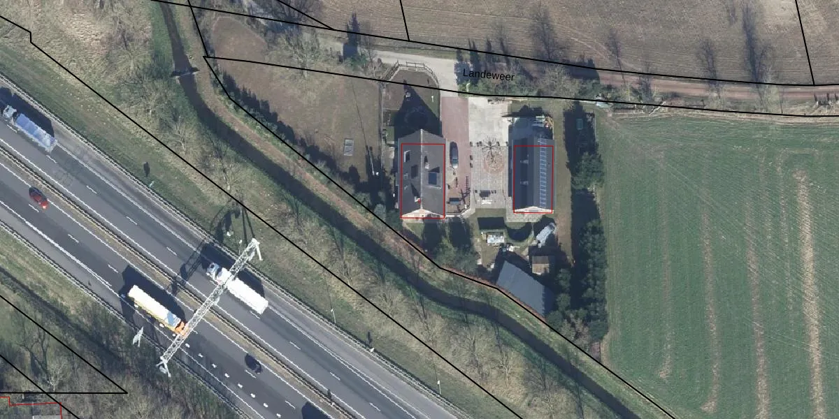 Het perceel waarop Landeweer 6 staat heeft een oppervlakte van 2,2 ha. Dit is een zeer groot perceel. De perceeloppervlakte wordt geregistreerd door het Kadaster. Gedetailleerde informatie over de maten van dit perceel kunt u vinden in het rapport Kadastrale kaart met maatvoering van Landeweer 6.