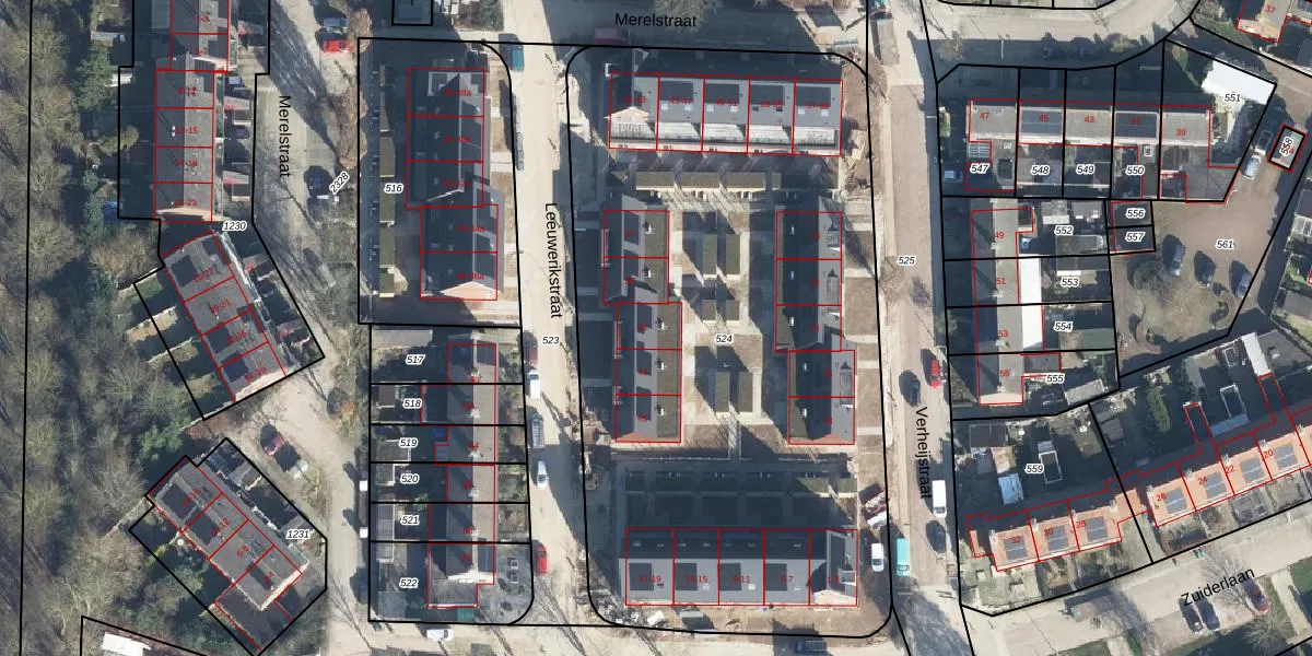 Het perceel waarop Leeuwerikstraat 41 staat heeft een oppervlakte van 4065 m². Dit is een zeer groot perceel. De perceeloppervlakte wordt geregistreerd door het Kadaster. Gedetailleerde informatie over de maten van dit perceel kunt u vinden in het rapport Kadastrale kaart met maatvoering van Leeuwerikstraat 41.